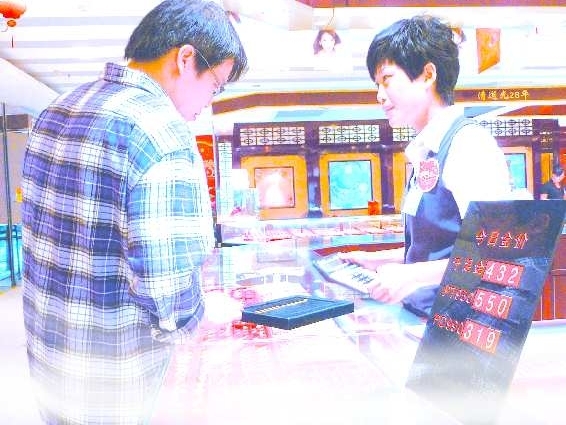 9月28日,记者在东三路某商场看到金价已经跌至432元/克(含10元手续费)。据工作人员介绍,最近一段时间受国际金价下跌的影响,东营金价也是一路下跌,“前一段时间曾经逼近500元/克,现在又连续下跌,几乎一天一个价。”记者了解到,432元/克的价格已经回到了8月初的水平。 本报记者 张大宁 摄影报道