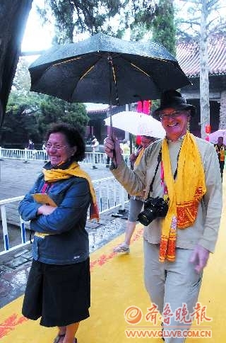 “我拜孔子已经有一年时间了,从中领悟到很多伟人的处事道理。”26日,王洋不顾家人反对,在一位朋友的陪伴下从广东乘坐飞机来到圣城曲阜,参加孔子文化节。“这次,我是以学生的身份来拜祭孔子的。”抵达曲阜后她先后参观了孔府、孔林,从中深切感受到了孔子的伟大思想和人格魅力。“心怀信义、真诚待人才能同样获得别人的尊重。”王洋说,如果身体状况允许,她会常到曲阜寻找圣人足迹,感悟孔子思想。