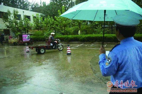 9月28日下午,在日照市区一家摩托车销售点,服务上门的交警正在监考。当时正下着雨,气温有点低,现场仅有十几人前来参加考试。据了解,摩托车驾照考试一至两周组织一次,今年已有五六百人通过摩托车驾考了,不过相比火热的汽车驾考,摩托车驾考还是有点冷清。 本报记者 刘涛 摄影报道