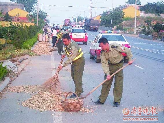 随着花生、玉米等粮食作物进入收获季节,路边晾晒花生等粮食作物的现象愈发严重,原本宽阔的马路瞬间被缩短,给车辆的通行造成了严重的安全隐患。