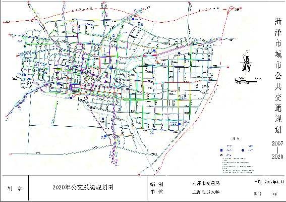 菏泽公交汽车公司办公楼的一层大厅内,贴着两张线路图,一张线条稀疏,从十几条线路的走向上,能看出菏泽城区的轮廓,它是“菏泽公交在运线路线网示意图”;另一张则被各种颜色、各种走向的线路填满,线路序号已排至50以上。这是“菏泽市城市公共交通规划(2007-2020)图”,两张图片对比之下,菏泽公交未来十几年的发展方向清晰展现在市民面前。
