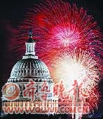 美国是以7月4日独立日为国庆日。每年的这一天,全美大大小小的教堂钟声齐鸣,各地居民自发地举行庆祝游行。一般情况下,这天参加游行的民众可以选择各式各样的化装,组成家庭小乐队,有的亲朋好友甚至祖孙几辈人一起,载歌载舞,拥上街头。大街上更是成为一片欢乐的海洋,各式彩车、模型车、杂技车等同欢乐的人群一起,组成了浩浩荡荡的游行队伍。游行结束后,人们聚集在公园或其他一些公共场所,以自己喜欢的方式共同欢度这一盛大的节日。