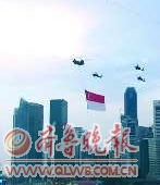 直升机飞过后,接着就是令人屏息仰首、由5名武装部队突击队员呈献的跳伞表演,他们将在1500米的高空,从大力士运输机上跳下,他们身上都背负着40公斤重的配备,政府大厦周围摩天高楼林立,对他们来说是一项挑战。 (宗禾)