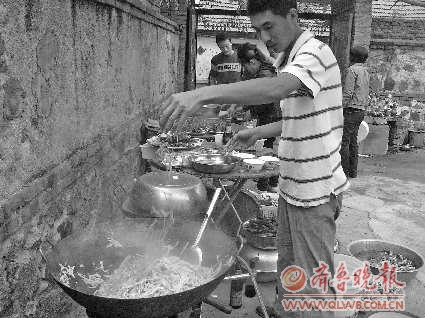 城里人吃婚宴,全部到酒店,在交通和餐饮并不发达的农村,流行的是“流动饭店”。所谓流动饭店,就是将饭店搬到订餐客户的家里,灶具、碗碟、桌椅统统包括在内,事主在家里就能享受饭店的待遇。这样的流动饭店在烟台莱阳市至少已有200多家。10月1日是莱阳市西留镇留家村赵老汉二儿子大喜的日子,当天他们家十几桌婚宴全部是由“流动饭店”操办的。