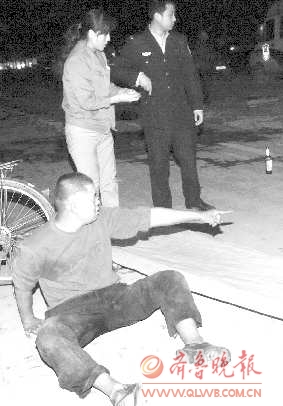 3日晚9点左右,记者跟急救车来到建设西路一家酒店门口,看到一名中年男子手握还有半瓶酒的啤酒瓶跪在地上,110巡逻民警上前试图搀他起来,但这名男子满嘴脏话,拒绝民警帮助。