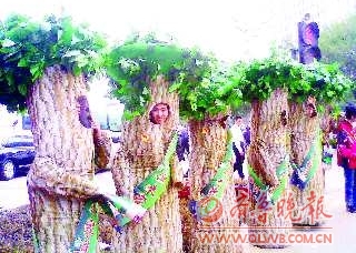 自述:黄金周期间一实木家具厂商的广告推销活动,工作人员都套上“大树”做宣传。