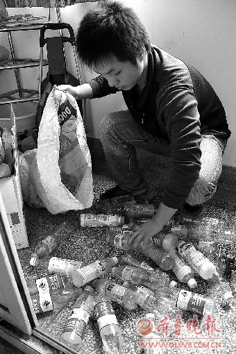 每一次回收废品之行,“麻袋哥”们都要走访几十个学生宿舍。