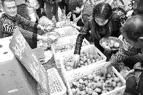 8日上午,红利市场卖柿子的小摊前挤满了买主。小摊的老板说,这些柿子都是秋天刚摘下来的,入口香甜而不涩。
