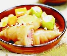 做法:将猪蹄洗净开边,与苡仁同放入锅内,加入少量