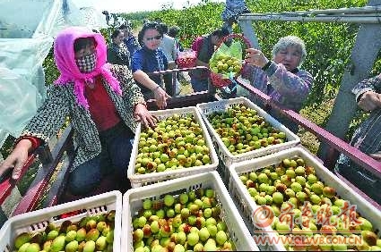 沾化冬枣开始上市,不少游客在沾化县下河乡东张村采摘冬枣。小小冬枣为当地人带来了滚滚财源,该县冬枣种植面积达到50万亩,产值20多亿元。 本报记者 左庆 摄