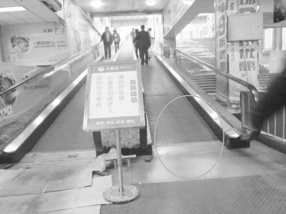 10日下午4时,记者来到这家超市的出口处,看到电梯前有一个提示牌,上面标注着“小童须由成年人陪同方可乘梯”等字样。小高妈妈所说的右侧电梯是向上运转的,附近一个摄像头对着电梯。