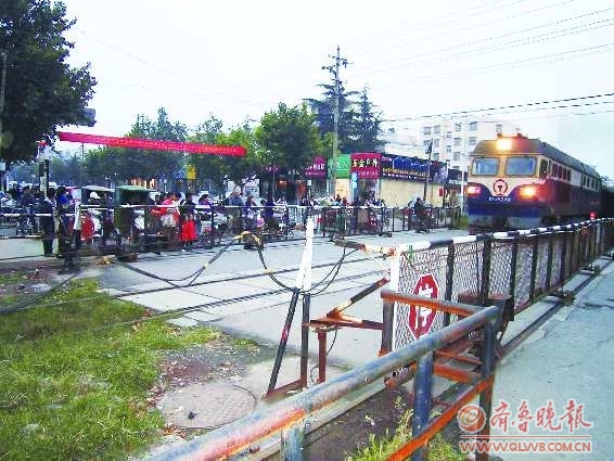 10日下午5时许,在市中区文化路铁路道口,下班的市民被一辆正在经过的火车挡了十几分钟,路上挤满了等待通过的车辆和行人。家住中兴花园的刘女士上下班都要经过铁路线,经常遇到火车抢道,有时能堵半个小时,她希望这些拉货的火车能错开上下班高峰,别和市民抢道。 本报记者 李泳君 摄影报道