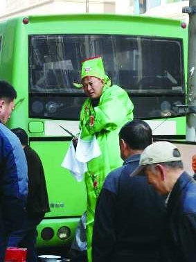 作品描述:一商贩为了招徕顾客,把自己打扮成“古人”,一时间引来众多围观者。