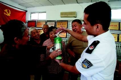 8日,在潍坊潍州社区,消防专家为社区里的居民讲解灭火器的使用方法。随着天气转冷空气越发的干燥,容易引发火灾,为此潍州社区邀请消防专家到社区,为社区里的居民讲解消防知识。
