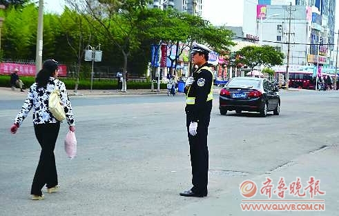 上午10点半,日照交警直属大队的民警李继业走到岗亭旁,提醒稍后将有车队经过,请杨英健配合。几句叮嘱后,他又回到路边指挥交通,并时刻关注着对讲机传来的每一个信息。