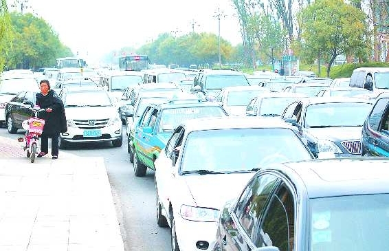 10月10日,记者在府前大街与东二路路口看到,等待过路口的车辆排起了近百米长的车队。由于东二路(府前大街至黄河路段)封闭整修,导致了原本行驶黄河路的车辆大量涌入府前大街,致使府前大街与东二路路口附近府前大街西行方向和东二路南行方向出现了车辆积压状况。据施工部门消息,东二路该路段施工预计两日内完成,整个东二路改造一周内基本完工。 本报记者 段学虎 摄影报道