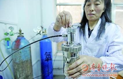 煤炭的固定碳和硫含量也是很重要的指标。为此,工作人员将1克煤粉放进专用的燃烧筒中,安装好镍铬合金的点火丝,然后接通电极。此外,还要在燃烧筒内加入少量的蒸馏水,并用50秒的时间充进纯度为99.99%的纯氧。