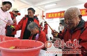 10月11日,麻风病休养员正在聚精会神地进行钓鱼比赛。当日,济南市皮肤病防治院麻风病区内举行了一场别开生面的运动会,“沙包投准”、“穿针引线”、“套圈”等7个针对麻风病人的身体特点设计的比赛项目,让病友们在运动中享受到快乐。 本报记者 郭建政 摄