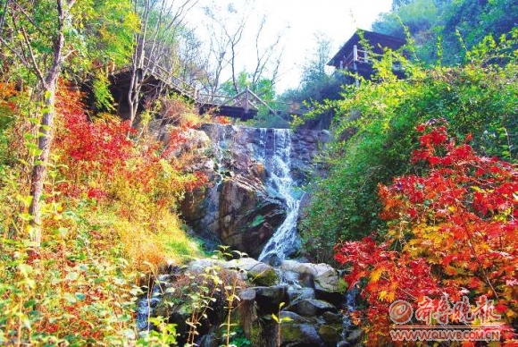 是山东少有的植物资源宝库,是秋季游览的最佳旅游目的地。九如山的秋是绚丽迷人的。层层叠叠的群山,密密匝匝的灌木森林,红黄绿相间的色彩,斑驳的像幅浓妆重彩的油画,绚丽耀眼,五彩缤纷。秋季是登山观水的最佳季节,九如山的山连绵36公里,峡谷纵横,植被茂密,有省内比较罕见的黄波罗、山茱萸、白桦、假色槭、欧洲花楸、美国红橡、糖槭、爆马丁香等数十种稀有濒危树种,一百七十多种树木的枝叶在这个季节里改变了颜色,十多种秋季植物正在竞相开放。你可以沿着曲折险峻的栈道蜿蜒而上,山菊花随实木栈道一路盛开,周遭是季相色相明显的黄栌、红栌、五角枫、九角枫,那一片片红叶在枝头燃烧,似写满相思的信笺在传递着爱的思念,旋落的红叶悄无声息地落进泉池里顺溪流而下,一路欢歌而去更见溪流的欢快与清澈。
