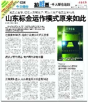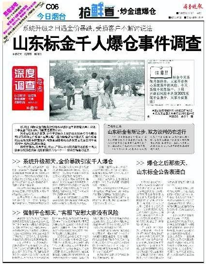 ▲本报10日、11日就山东标金千人爆仓事件做的深度调查版面。