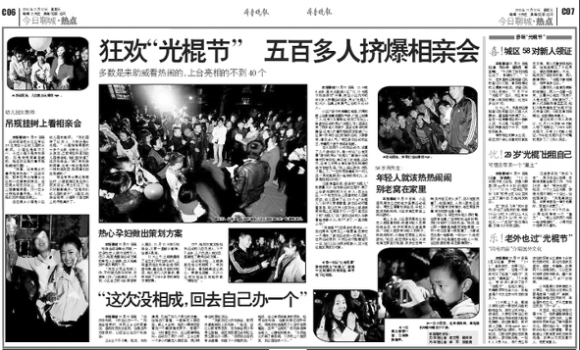 “‘神棍节’是我们剩男剩女的节日,但如果只过半天,就太有意义了。”白领吴女士希望在‘神棍节’当天告别单身。为此,本报为单身男女提供交友的平台,11月11日至12日举办大型公益相亲会,让单身男女众里寻TA。