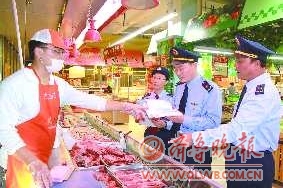 11日,记者从滕州市北辛街道办事处了解到,为加强猪肉市场监管,确保广大群众吃上“放心肉”,北辛工商所成立了专门检查小组,对辖区市场内的猪肉采取上市检验制度,每天进行核查登记,确保消费者购买到放心猪肉。