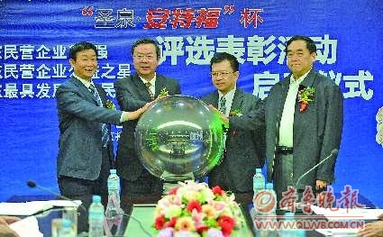 本报济南10月14日讯(记者 马绍栋) 14日上午,由省工商联和齐鲁晚报联合主办的“圣泉·安特福杯”2011年度“山东省民营企业100强”、“山东省最具发展潜力民营企业”、“山东省民营企业公益之星”评选活动启动仪式在济南举行。相对于第一届,本次评选创新性提出公益之星的评选,力争在展示全省民营企业“强、快”的同时,突出民企对社会公益的贡献。