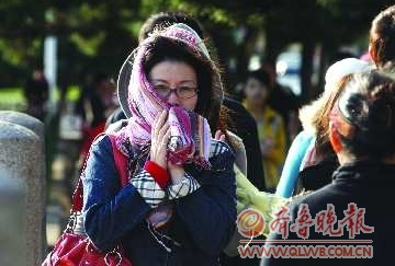 17日,在八大关景区(上图),不少植物树叶泛黄、泛红,整个景区别有一番风致。纷至沓来的新人竞相拍照,使得八大关的秋天变得更加浪漫。在栈桥附近(下图),因为风大、天凉,一名女子用围巾捂住鼻子行走。本报记者 杨宁 张晓鹏 摄影报道