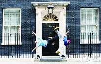 一群年轻人前往唐宁街,在首相官邸外表演朗诵、练习拳击等,推广一个“有地方可去”的全国性项目,帮助年轻人寻找活动场地。