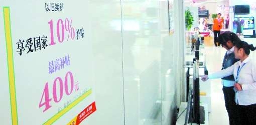 2009年6月1日,家电“以旧换新”在山东等9个省市开始试点,时间暂定为一年。市民购买冰箱、电视机、空调、洗衣机、电脑,可以享受10%的补贴。