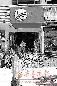 17日,在昆明路和统一路交汇路口,一家商店正在进行内部装修。装修产生的建筑垃圾被人从楼上的窗口直接扔出,弄得人行道上满地都是。过往不少市民担心砸到自己,只好绕过人行道走车行道,很是不便。本报记者 王震 摄