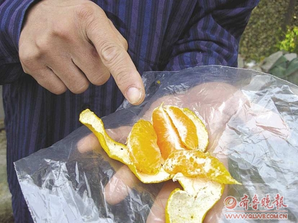 16日,市民夏先生告诉记者他吃到了带蛆的柑橘,当时他觉得很恶心,直接将橘子扔了,后来才想到给报社打电话反映,但是橘子已经被扔到了垃圾筐内。为证明他吃到的橘子带有蛆虫,夏先生又将橘子从垃圾中找了出来。记者看到,夏先生重新找出来的橘子,虽然蛆虫已经不见,但是能看出橘瓣上被虫子钻过的虫眼。