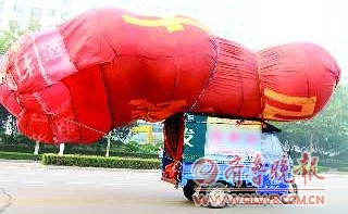 大包气球晃晃悠悠地行驶在