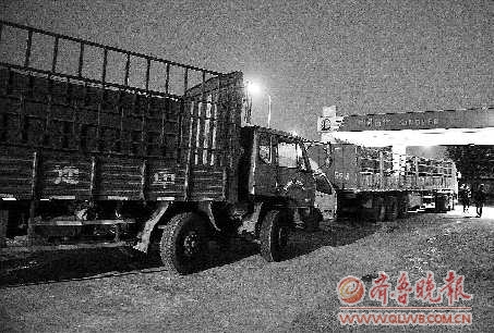 2010年11月,济南市区部分加油站出现了“柴油荒”,导致一些大货车排队加油。 本报记着 周青先 摄