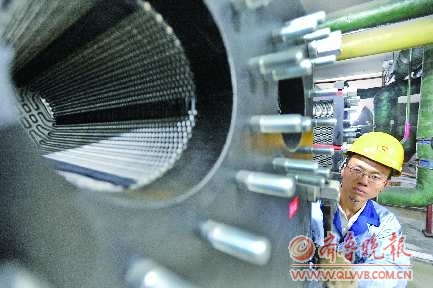 10月19日,在济南热力有限公司正觉寺锅炉房内,工作人员正在安装板式换热器。据介绍,眼下供暖已经进入倒计时,部分“孤岛”小区今冬将实现集中供暖。 本报记者 王媛 摄