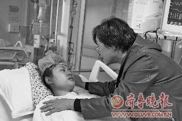 19日下午,记者陪同武圆圆的姑姑武女士,进入滨医附院的重症监护室,见到了病床上的武圆圆。武女士告诉她,这两天,她所在单位的工友踊跃献血,帮她度过了危险期。武圆圆听罢流下眼泪:“原来有那么多的人在关心我,谢谢大家,我会坚强。”