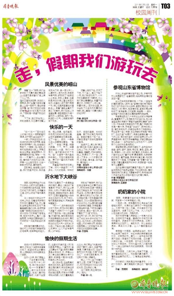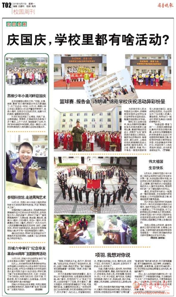 其实,“校园观察员”的主要展示平台为齐鲁晚报《校园周刊》,上面固然有很多文字性的东西,但亦不乏孩子们拍摄的照片和绘画作品。作为“齐鲁雏鹰工程”活动的一部分,招募“校园观察员”旨在调动孩子们的积极性,让他们能多用自己的双眼去观察周遭世界,并将这些发生在自己身边的事情记录下来,进而获得更多鼓励和关注,最终促进成长。