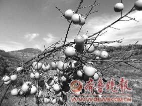 家乡那独有的水土、特有的环境和适宜的气候,养育了那一望无际的柿子树,田野里,山坡上,石崖旁,深沟内,到处都是红火火的柿子树。家乡的柿子历史悠久,具体栽培年限虽不太详,但早在明太祖朱元璋时,就有“柿汁成河顺沟淌,自然成酒百里香”的传说。大山深处,有树龄在几百岁的老柿子树,也有树龄在四五十年左右的中年柿子树,还有一二十年上下的年轻柿子树。如今,家乡的柿子树面积已达到了两万亩,近三百万棵,据说产量约占世界总产量的5%左右,有“江北第一柿乡”的美誉。