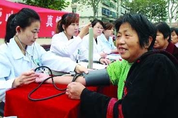 “大娘,天气转凉,血压有些高,除了服药外,饮食上得多注意。”19日上午,由和平医院和沃尔玛超市举办的“社区流动免费义诊”活动在北胡社区拉开帷幕,让社区居民尤其是老人不用走出社区就能免费体检。记者了解到,“社区流动义诊”自启动以来,先后为市区的10多个社区送去了免费义诊。 本报记者 吴凡 孙国祥 摄影报道