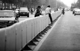 18日,在潍坊新华路上,市民违规翻越道路中间的隔离护栏。原本是为了保证市民安全的隔离护栏,却被用来攀爬,不但给攀爬者带来危险,给过往的车辆也造成安全隐患。