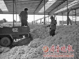 高军旺说,这个星期以来,很少有棉商到棉厂来送棉花。而厂里的棉花大部分是从河北衡水、天津两地收购来的。“武城县靠近河北衡水,那里的棉花收购价比德州低一些,加上河北那边土地是承包出去的,棉农没有地方存大量的棉花,所以必须卖了。”高军旺表示,相比德州本地而言,从河北收棉容易一些,价格也低一些。“现在就希望价格能涨上去,棉农才会愿意卖棉花,不然棉农卖了也亏。”