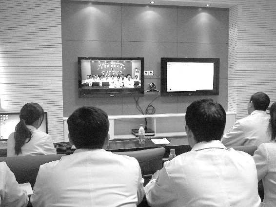 19日,东营市人民医院与新疆疏勒县人民医院实现远程会诊,同时远程教学开通。随后,双方共同为疏勒县一名心梗病患者的病情进行了讨论、分析。 本报记者 王瑞景 摄影报道