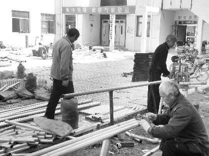 18日上午,记者在菏泽市牡丹区南平花园小区看到,小区入口处张贴着醒目的标语,通往小区中心广场的每一栋楼下,都放置着准备敷设入地的管线。而广场上则是一番忙碌的景象,一堆堆建筑材料中间,十余名工人正在加紧进行管材焊接。