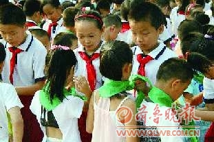 本报10月20日讯(记者 吴金彪) 20日,在舆论压力下,本应在元旦举行入队仪式的长清区石麟小学决定立即让学生停止佩戴绿领巾,并将绿领巾全部换成红领巾。