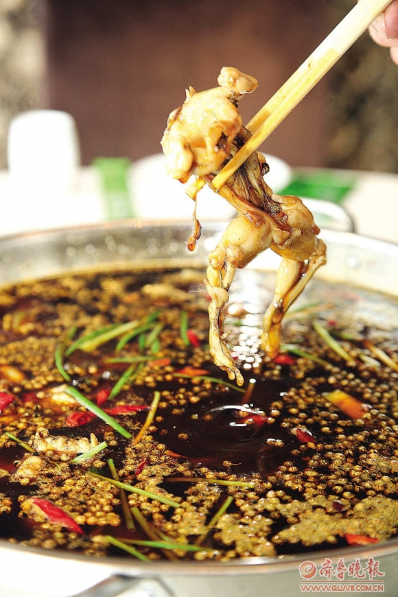 实话说在写完那篇吃后感后,自己也是觉得缺点什么。现在想来,缺少了一个十分重要的元素,那就是菜品的灵魂。川菜的特点是一菜一格、百菜百味,每一道菜其实骨子里并不相同。而对于这道风靡巴蜀之地的美蛙鱼头来说,其菜品主要特点就是美蛙肉、鱼肉经过烹制后呈现给味蕾的鲜美之感,入口之后麻辣才刺激与带给舌尖的滑腻之感同时向你的大脑皮层反馈着信号。一口下肚便放不下筷子,吃过之后令人难忘。再加上黄橙橙的菜籽油散发出的香味,菜品本身的视觉美感,定然让人产生迷恋之情。或许这就是读者信中提到的“浪漫之感”。