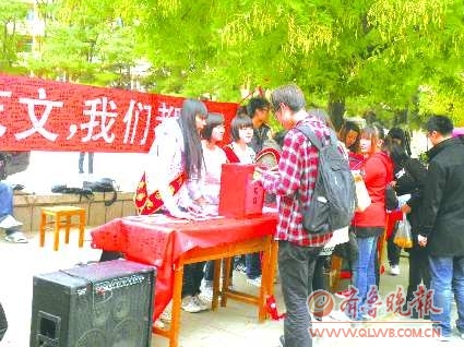 山大威海分校的商家们也在献爱心。张鹏在学校蒙牛商城经营一家快餐店,19日晚上得知张艺文的情况后,他发动临近几家店的店主为张艺文捐款。到20日中午,已经有六七家商家在他的呼吁下参与募捐。