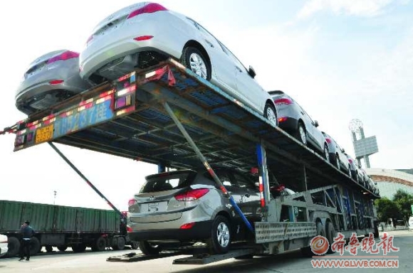 20日,枣庄市交警支队高速大队在京台高速滕州服务区设卡检查。人货混装、遮挡车牌、无证驾驶等违法违规运输行为被查。图为一辆私自改装的卡车被查扣,车身长度比规定超出了大约6米,交警依法对车主进行了处罚。 本报记者 徐萌 摄