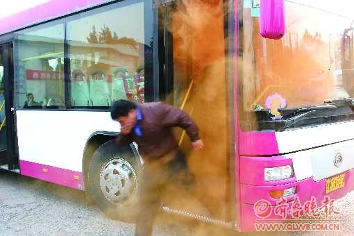 20日上午,枣庄汽运有限公司与枣庄市公安消防局市中消防大队联合举行消防安全培训活动,其目的是提高全体员工消防安全意识,预防和减少火灾事故的发生。图为员工正在进行逃生演练。