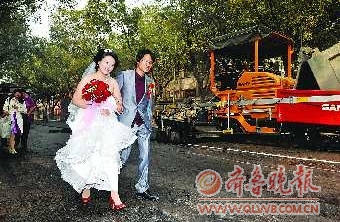 10月22日,一对新人兴致勃勃地走在正在施工的益寿路上。当日是家住益寿路的李梁平和吴宜霖大喜的日子,正赶上该路段封闭施工,婚车无法驶入,他们步行到外面乘车,小小的不便丝毫没有让这对新人感到不快,反而别有一番滋味。 本报记者 郭建政 摄影报道