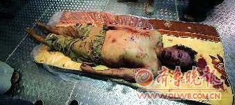 在米苏拉塔一家肉铺的冷藏室内,尸体放在一张垫子上,上身裸露。许多人排着队,拿着带有拍照功能的手机,见证卡扎菲的死亡。